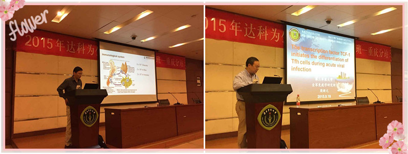 19日上午,培訓(xùn)班8點(diǎn)半準(zhǔn)時(shí)開始,我們很榮幸的邀請(qǐng)到第三軍醫(yī)大學(xué)免疫學(xué)教研室主任、全軍免疫學(xué)研究所所長(zhǎng)吳玉章教授來(lái)給大家做開場(chǎng)介紹。吳教授生動(dòng)風(fēng)趣的語(yǔ)言與大家分享了他和達(dá)科為的不解之緣,并感謝達(dá)科為公司一直以來(lái)在許多學(xué)術(shù)會(huì)議中的支持。