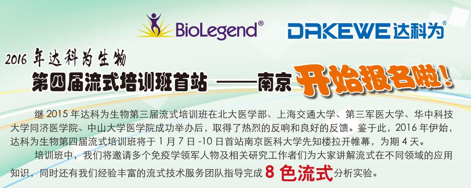 2016年達(dá)科為生物第四屆流式培訓(xùn)班——首站南京(第二輪通知)2016年1月7日 至10日(共4天,理論培訓(xùn)2天,流式操作培訓(xùn)2天)