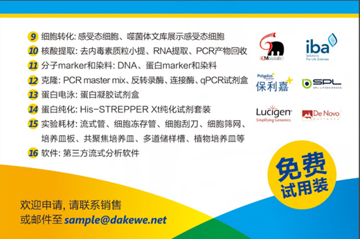 細胞生物學、分子生物學以及細胞免疫相關(guān)實驗的試用裝已經(jīng)為您準備好了,總有一款適合你。