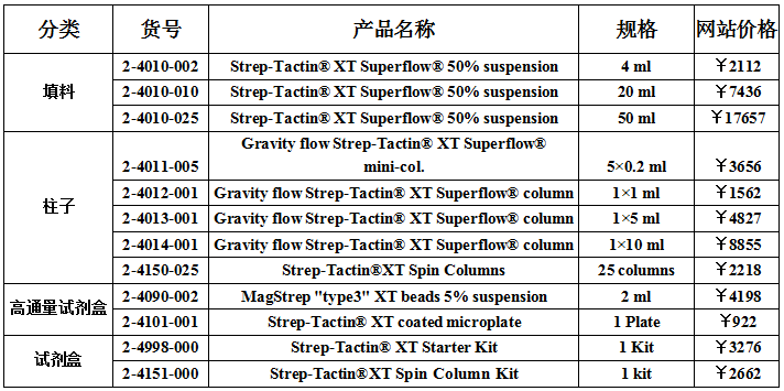 B、凡購(gòu)買(mǎi)Strep-Tactin?系列產(chǎn)品,贈(zèng)送一組Strep-Tactin?XT Trial Kit (Cat#2-4999-999)