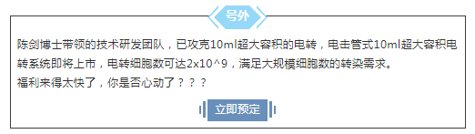 現(xiàn)在,在電轉(zhuǎn)這一細(xì)分的細(xì)胞生物學(xué)高科技領(lǐng)域,中國(guó)人的科研力量已經(jīng)出現(xiàn)!已經(jīng)落地實(shí)現(xiàn)商業(yè)化。已經(jīng)加入激烈的市場(chǎng)競(jìng)爭(zhēng),正面挑戰(zhàn)amaxa技術(shù)!已經(jīng)在美國(guó)和中國(guó)多個(gè)重要科研院所(都是具有多臺(tái)amaxa設(shè)備,多年amaxa使用經(jīng)驗(yàn)的實(shí)驗(yàn)室)得以驗(yàn)證,成功改寫了用戶的看法,實(shí)現(xiàn)了商業(yè)市場(chǎng)競(jìng)爭(zhēng)的勝利。