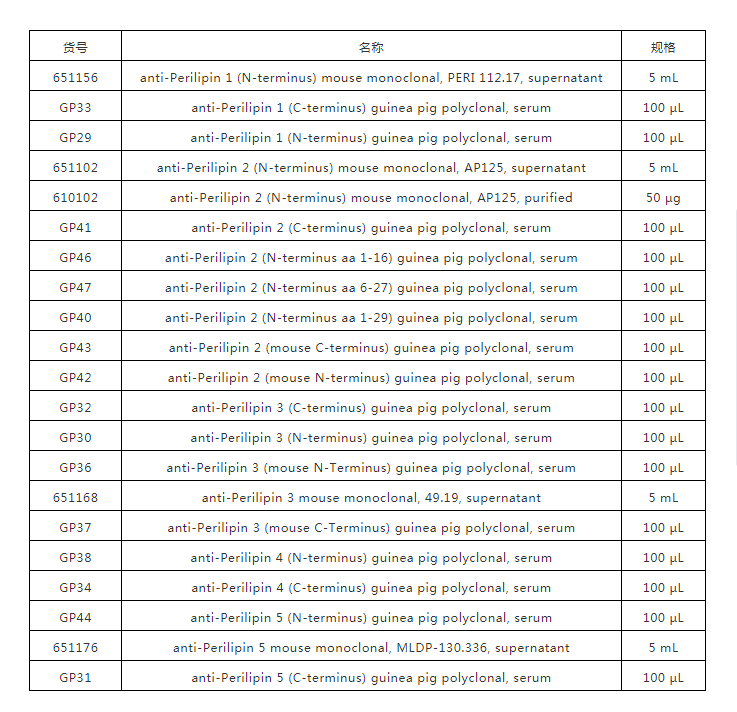 近年來很多研究是關(guān)于脂滴(Lipid drops,LDs)與一些疾病的關(guān)系,比如脂肪肝、動脈粥樣硬化、腎臟脂質(zhì)代謝紊亂、肥胖癥等。perilipin(PLIN)家族是目前研究較多的LDs結(jié)合蛋白。在哺乳動物中PLIN家族共有五個(gè)成員,分別是perilipin, adipophilin,TIP47, S3-12 和MLDP/OXPAT ,也叫做 PLIN1-5 ,分布在身體的各個(gè)部位。