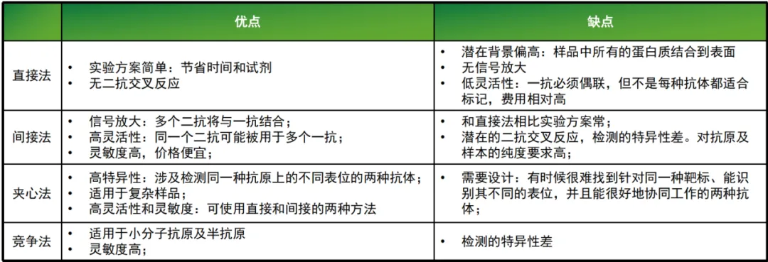 • 夾心法:常用于檢測(cè)大分子抗原。將捕獲抗體固定于固相載體上,加入待測(cè)樣本,再加入標(biāo)記的檢測(cè)抗體,即可對(duì)抗原進(jìn)行檢測(cè)。