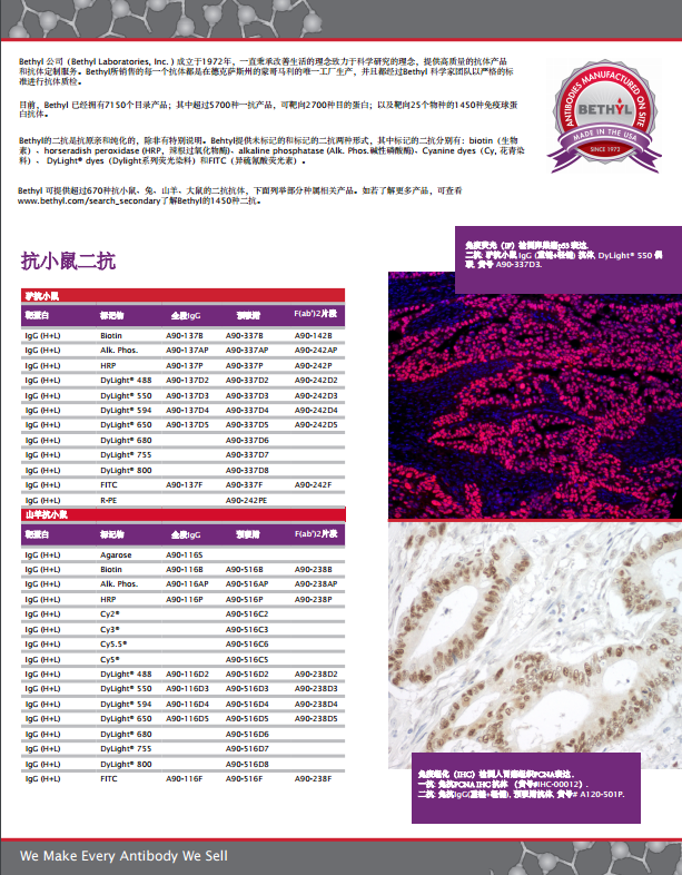 • Bethyl 二抗產(chǎn)品冊(cè)